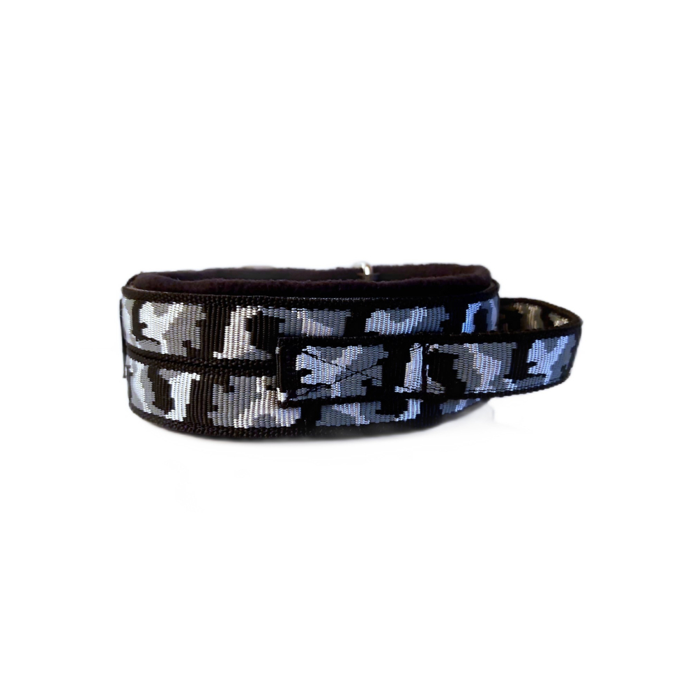 Lijn is 1,5 m lang, bestaat uit 2 lagen nylon en is bijpassend aan de halsband zonder print.