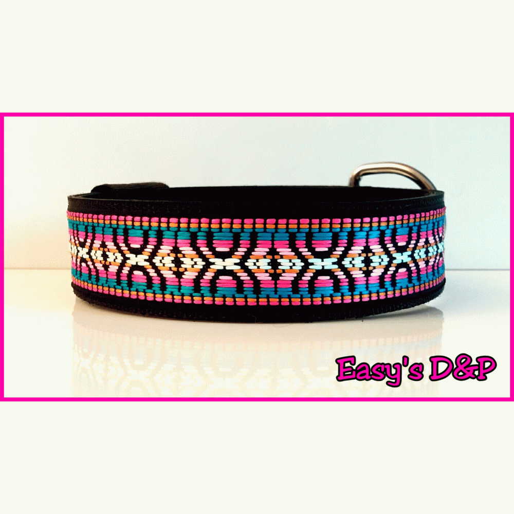 Lijn is 1,5 m lang, bestaat uit 2 lagen nylon en is bijpassend aan de halsband zonder print.
