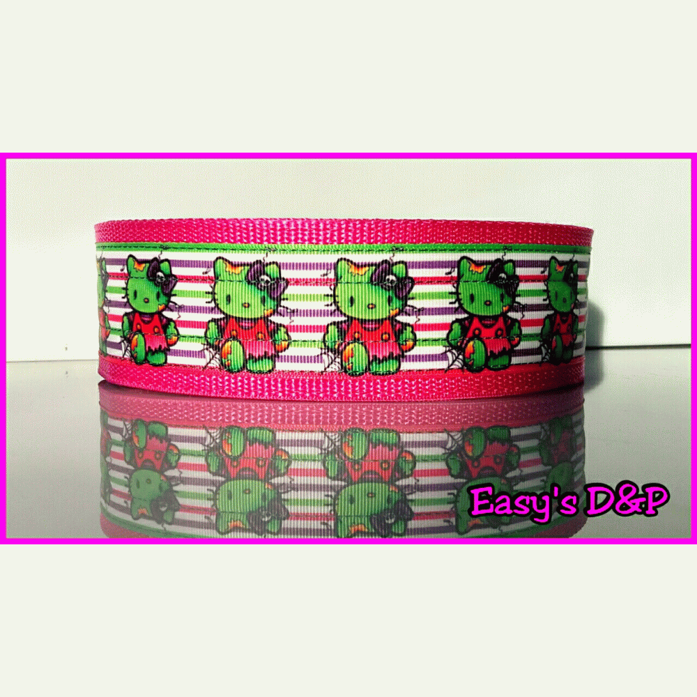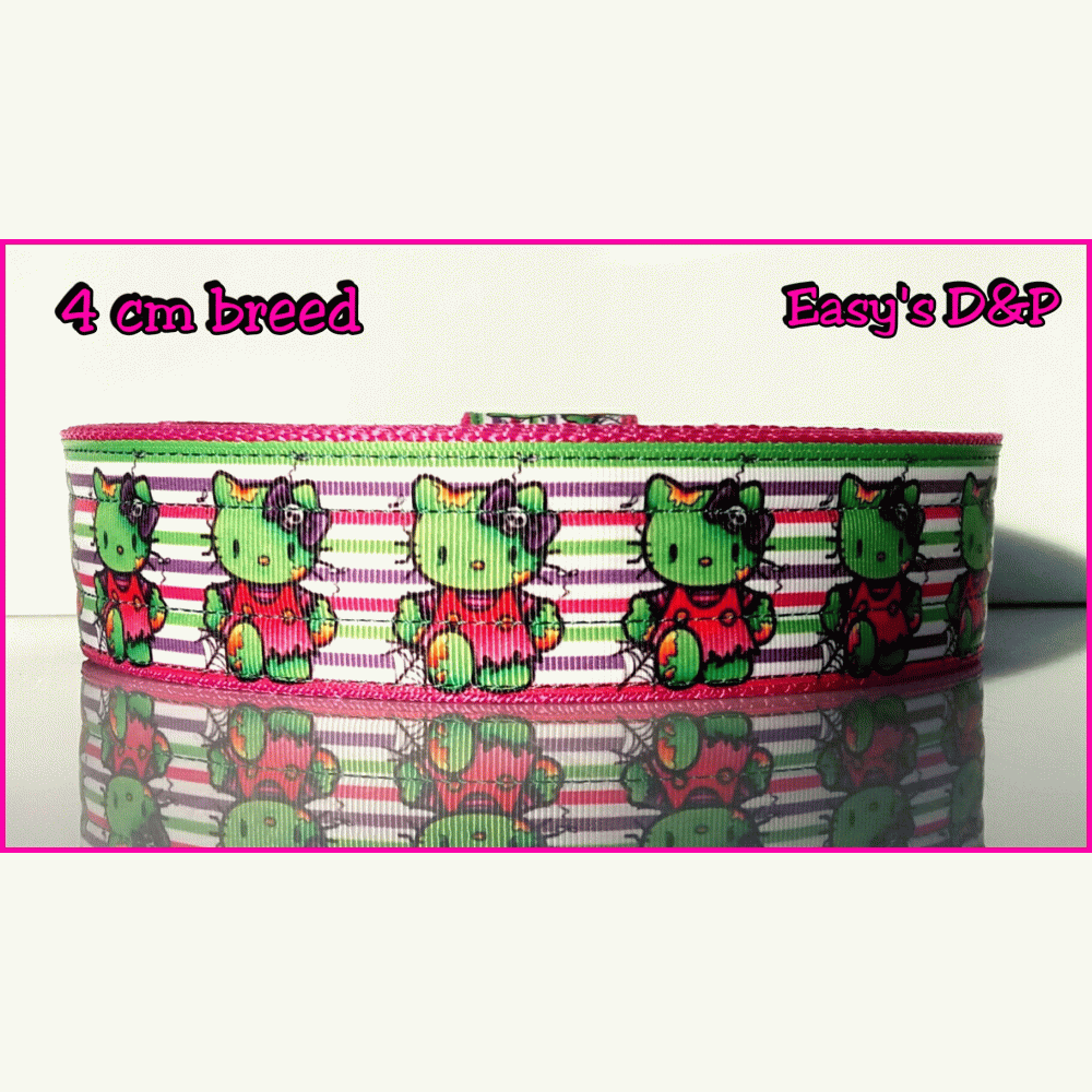 Lijn is 1,5 m lang, bestaat uit 2 lagen nylon en is bijpassend aan de halsband zonder print.