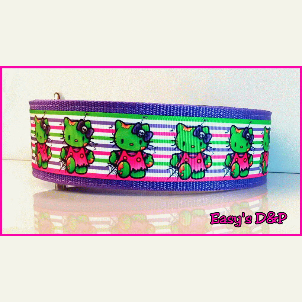 Lijn is 1,5 m lang, bestaat uit 2 lagen nylon en is bijpassend aan de halsband zonder print.