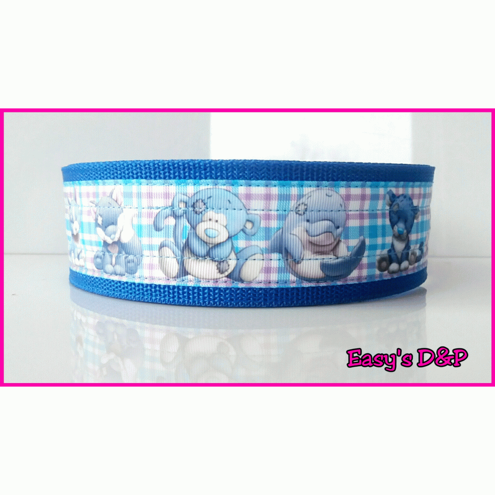 Lijn is 1,5 m lang, bestaat uit 2 lagen nylon en is bijpassend aan de halsband zonder print.