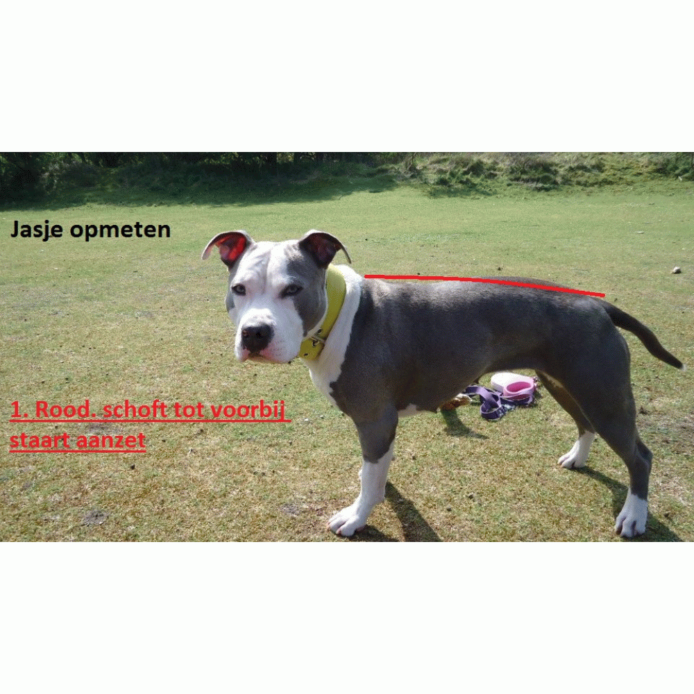 De tweede buikband is een los bandje dat te verstellen is, deze word vast gemaakt bij de buik voor de achtepoten zodat de buik ook bedekt is. Eventueel kan een jasje ook langer worden gemaakt, dit graag bespreken via prive bericht.