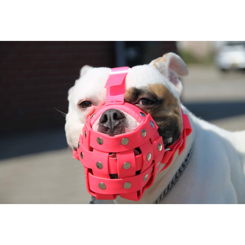 Muilkorf van rubber is super sterk, makkelijk schoon te maken en word niet nat. Het is glad en lijkt op leer maar dat is het niet. Doordat het glad is zou het eventueel zonder voering kunnen, maar voering is een optie.