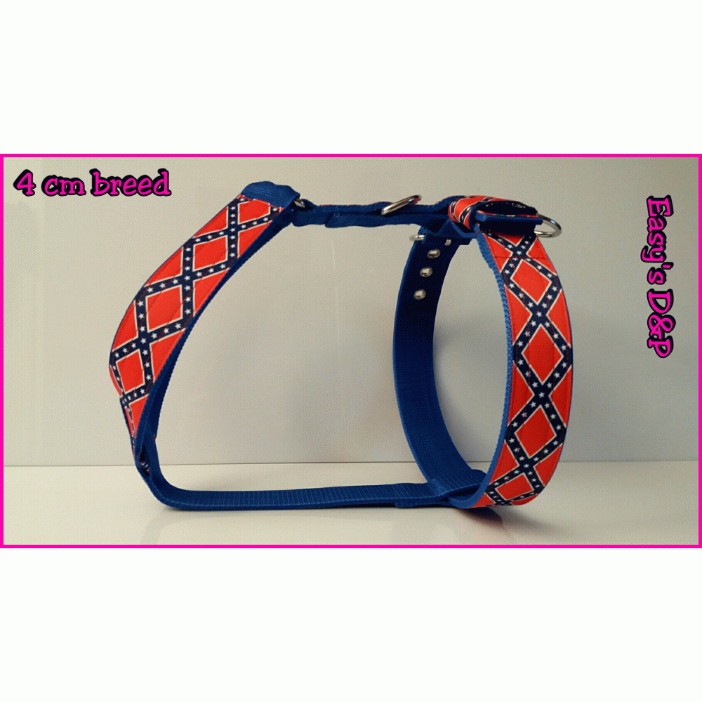 3. Paars van borstbeen tot achter voorpoten    34 cm       4. Groen buikband     73 cm  t/m   90,5 cm