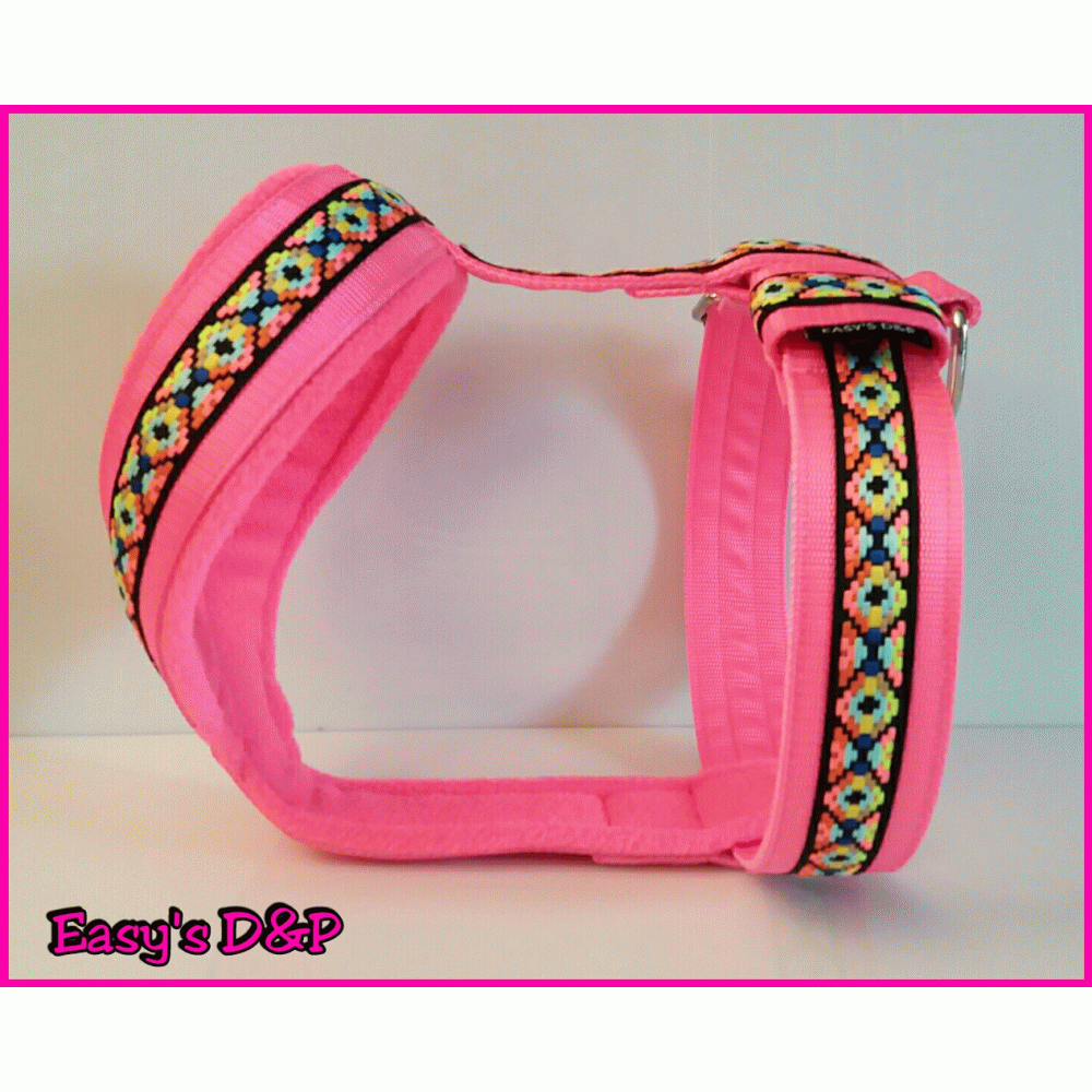 3. Paars van borstbeen tot achter voorpoten    34 cm       4. Groen buikband     73 cm  t/m   90,5 cm
