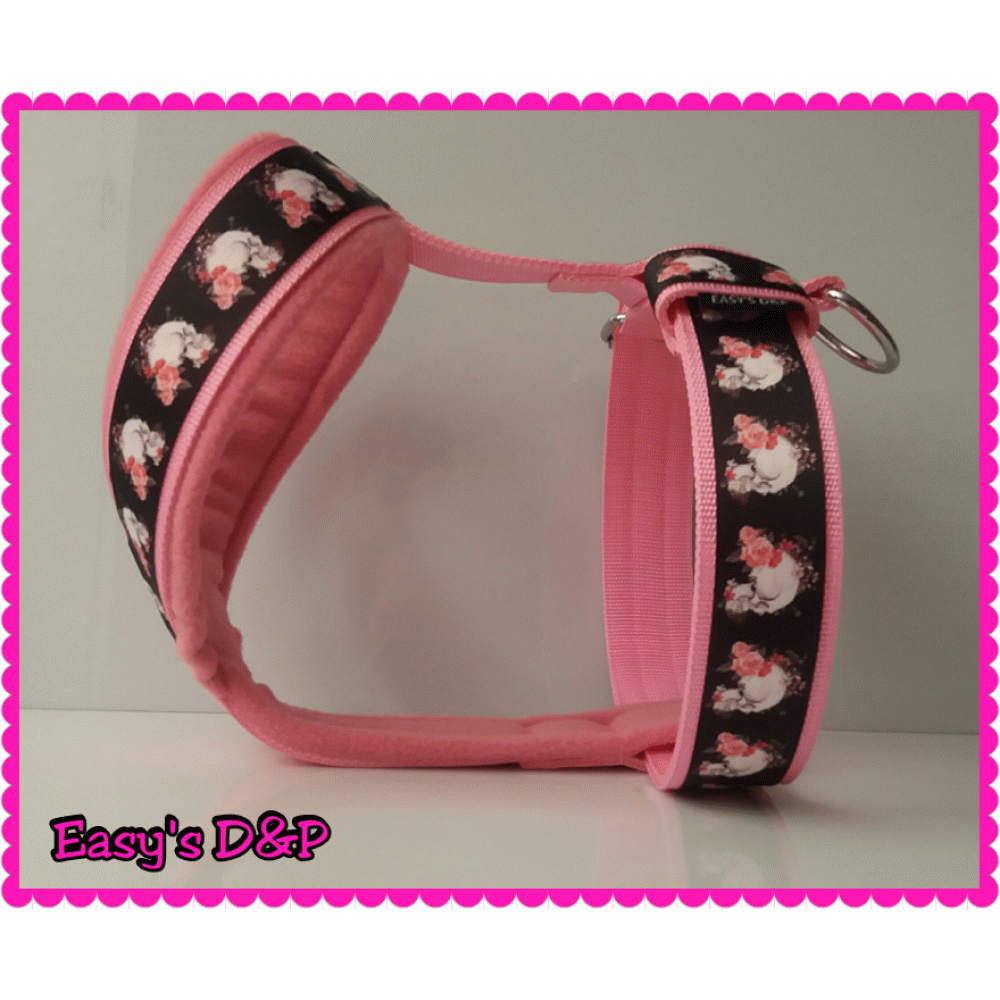 3. Paars van borstbeen tot achter voorpoten    34 cm       4. Groen buikband     73 cm  t/m   90,5 cm