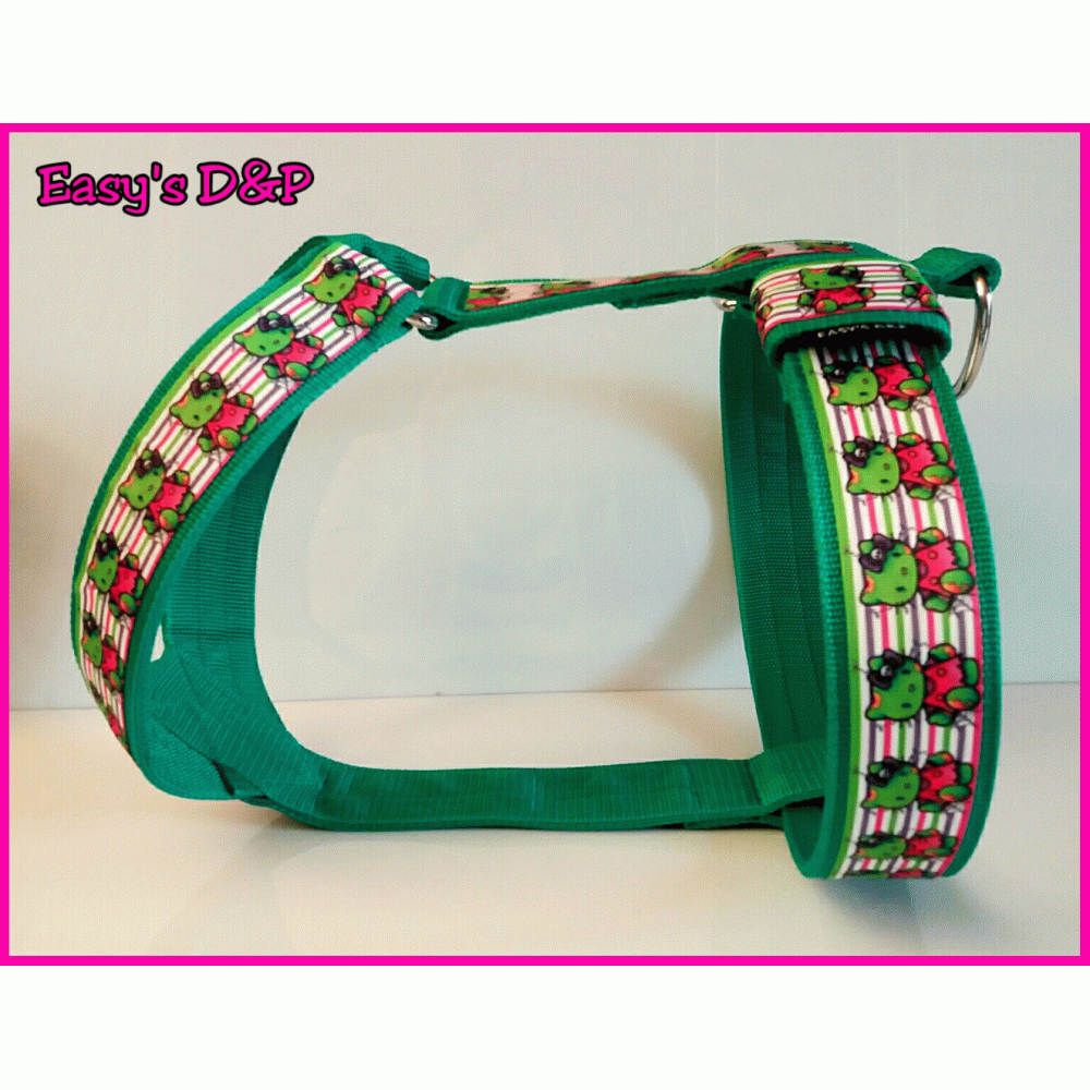 3. Paars van borstbeen tot achter voorpoten    34 cm       4. Groen buikband     73 cm  t/m   90,5 cm