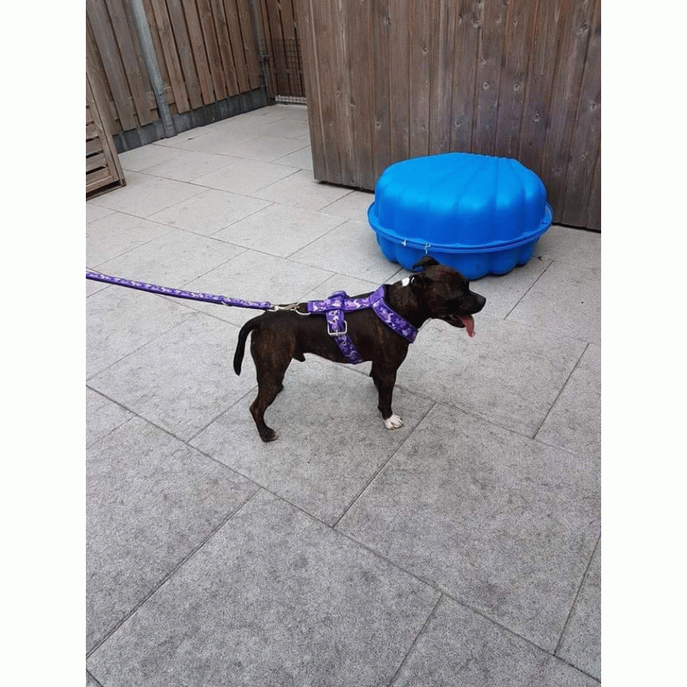 3. Paars van borstbeen tot achter voorpoten    34 cm       4. Groen buikband     73 cm  t/m   90,5 cm
