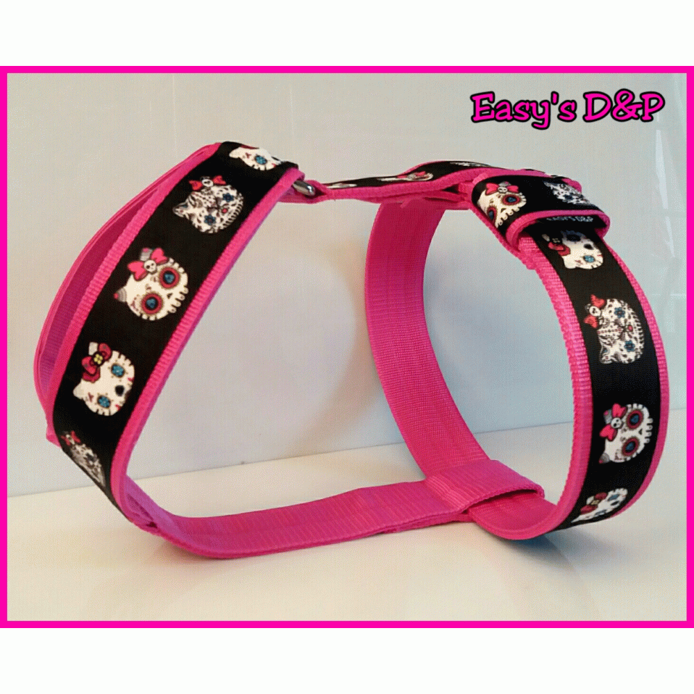 Het turquoise tuig is zoals een tuig met verstelbare gespen op de borst eruit ziet.