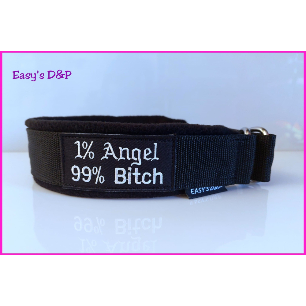 De sliphalsband kan in halfcheck deze heeft een slipstop, hiebij stopt de slip zodat het geen strop word die de nek afknijpt. Ook is deze mogelijk als sliphalsband zonder stop.