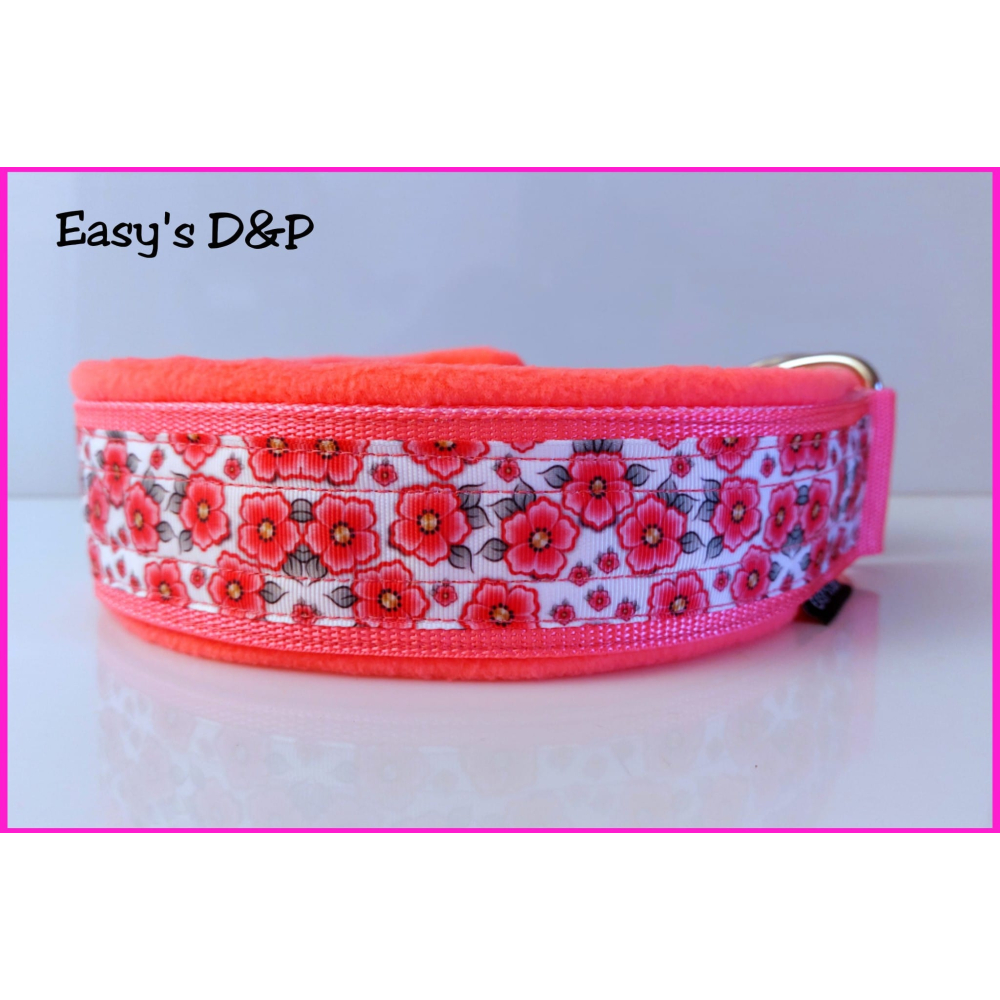 Halfcheck neon roze bloemetjes